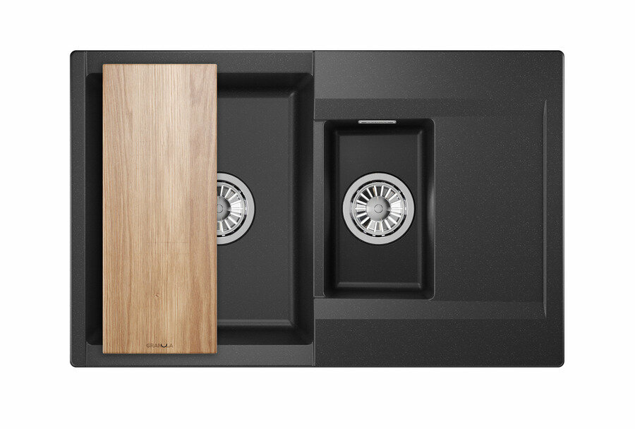 Кухонная мойка кварцевая Granula GR-8101 двухчашевая, врезная, чаша 335x420, 335x429, цвет шварц (8101sv)