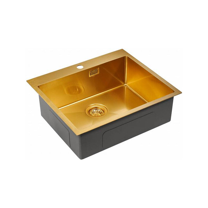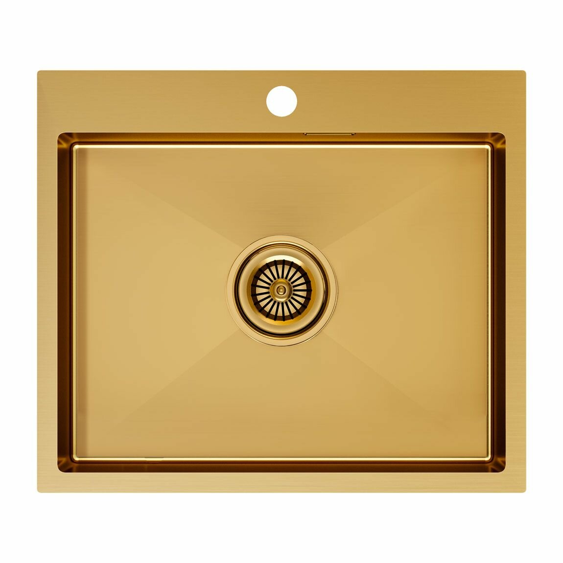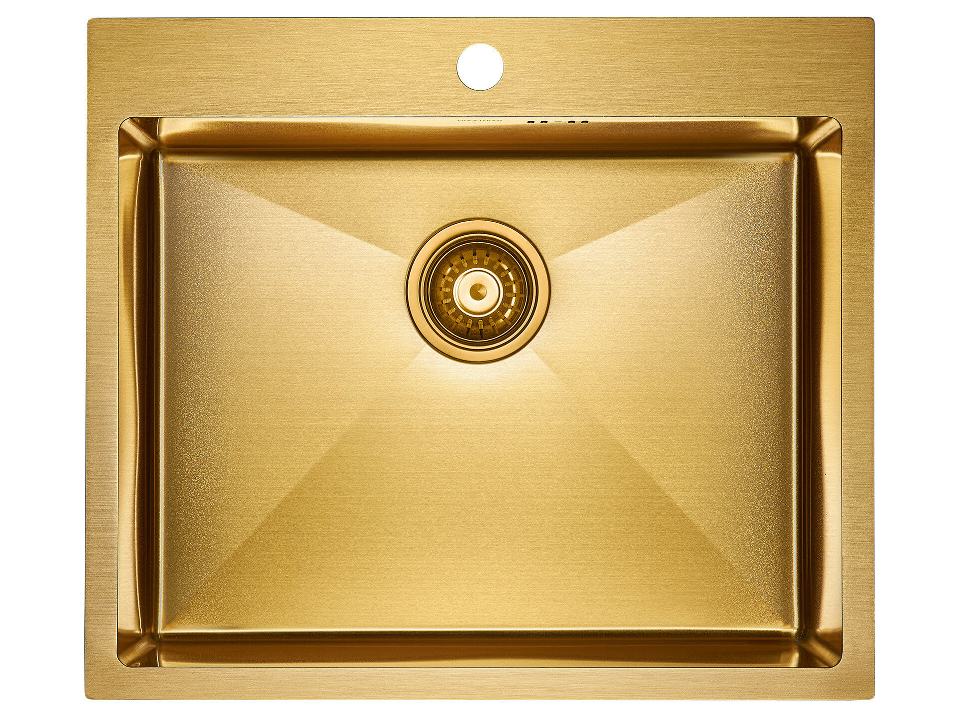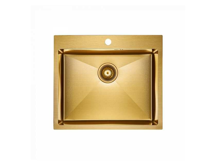 Купить Мойка для кухни из нержавеющей стали Paulmark KRONER 59 590х510 мм, PVD покрытие, отверстие под смеситель, врезная, подстольная и вровень со столешницей, цвет брашированное золото