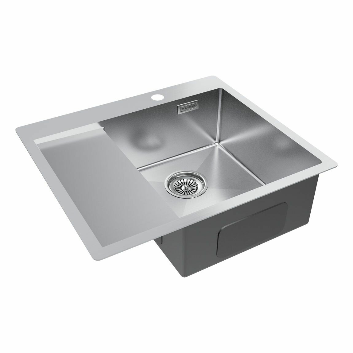 Мойка для кухни из нержавеющей стали AISI304 Paulmark VELTEN 59, 590х510 мм, шумопоглащающее покрытие, отверстие под смеситель, универсальный монтаж, цвет брашированная сталь