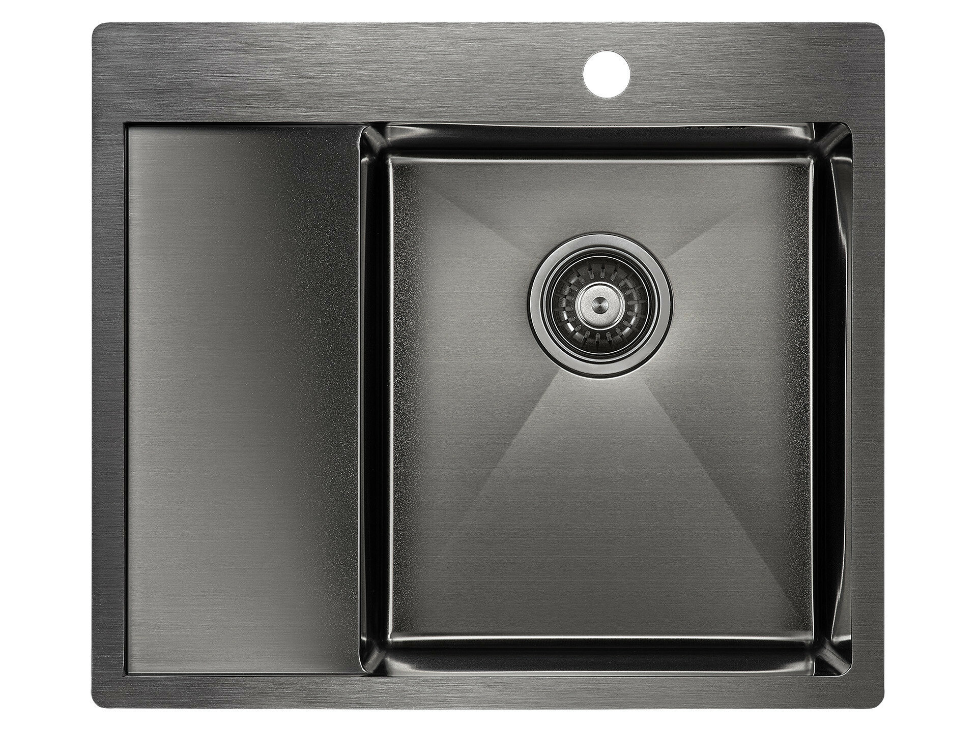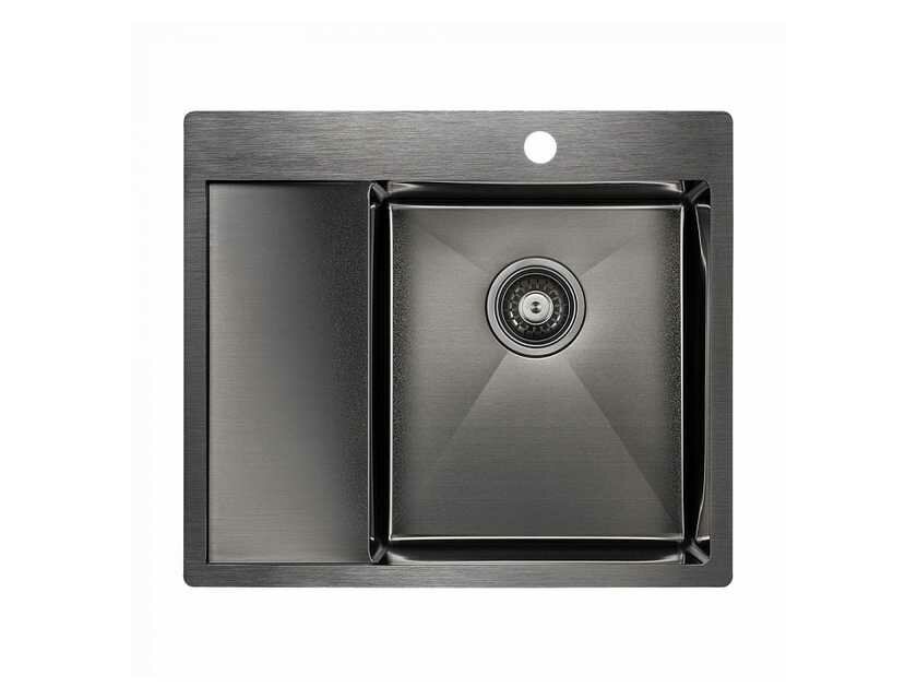 Мойка для кухни из нержавеющей стали Paulmark KRONER 59 590х510 мм, PVD покрытие, отверстие под смеситель, врезная, подстольная и вровень со столешницей, цвет вороненая сталь