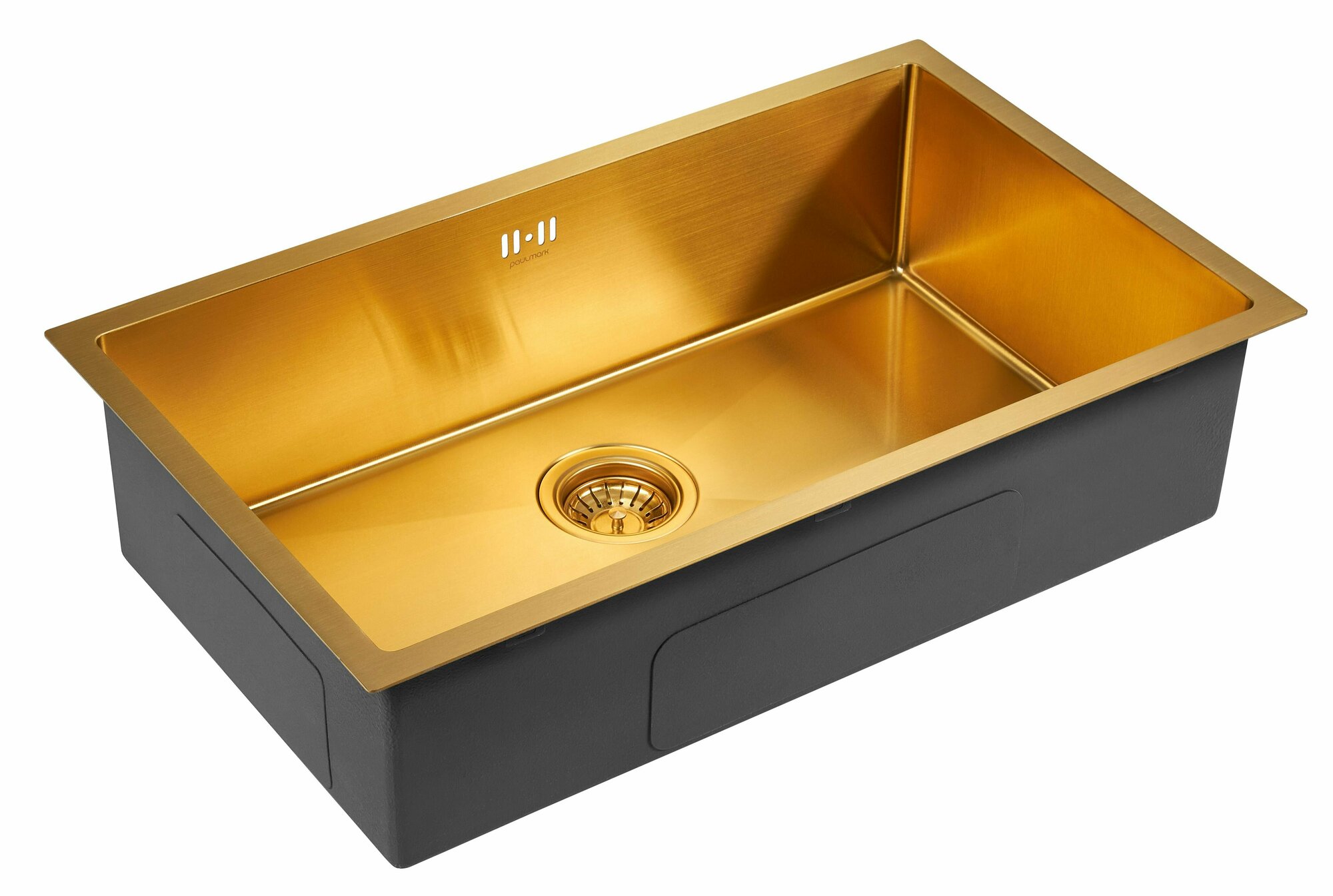 Купить Кухонная мойка из нержавеющей стали Paulmark NEXT 74 UNI, 740х440 мм, PVD и шумопоглащающее покрытие, врезная, подстольная и вровень со столешницей, сифон в комплекте, цвет брашированное золото