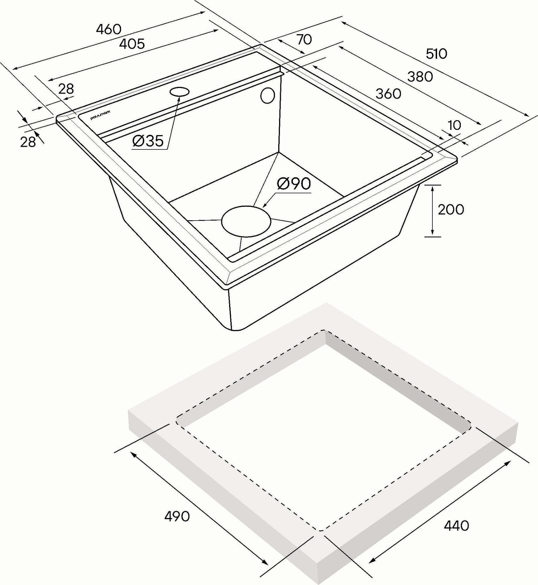 Мойка гранитная BRILON, PM104546-BL, черный, 445х460, подст. мон. Paulmark