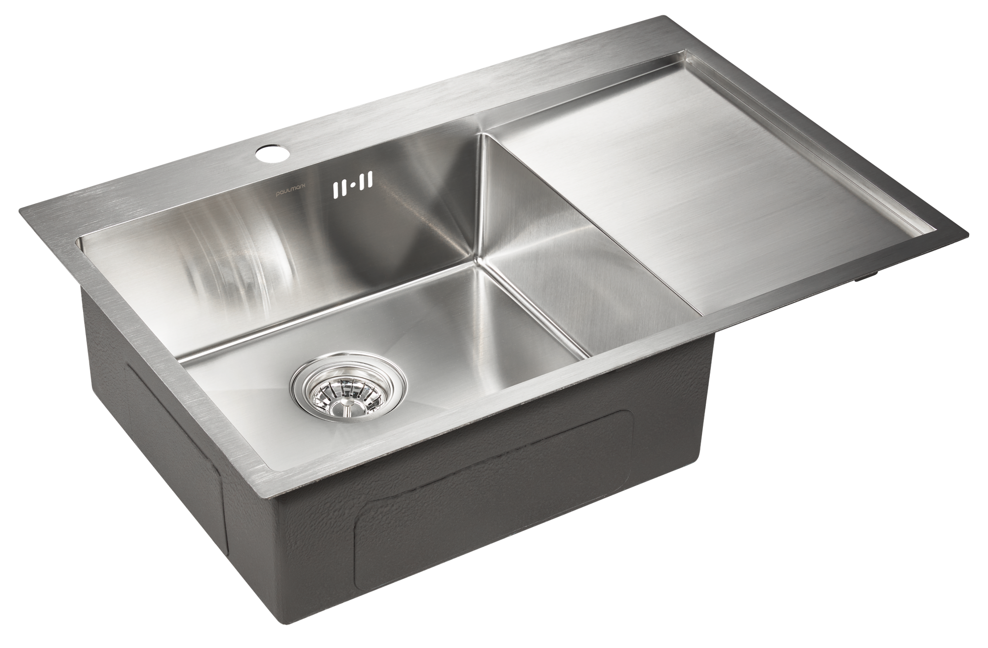 Купить Кухонная мойка из нержавеющей стали Paulmark KRONER 78F, 780х510 мм, мойка слева, врезная / вровень со столешницей, цвет брашированная сталь