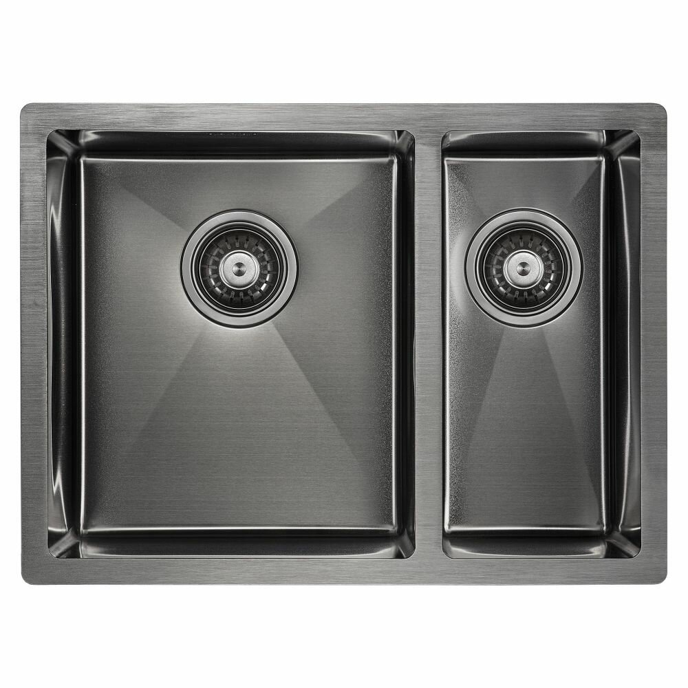 Мойка для кухни из нержавеющей стали Paulmark KRONER-PRO 59, 590х510 мм, 2 отверстия: под смеситель и дозатор, монтаж: вровень со столешницей / врезной, цвет вороненая сталь