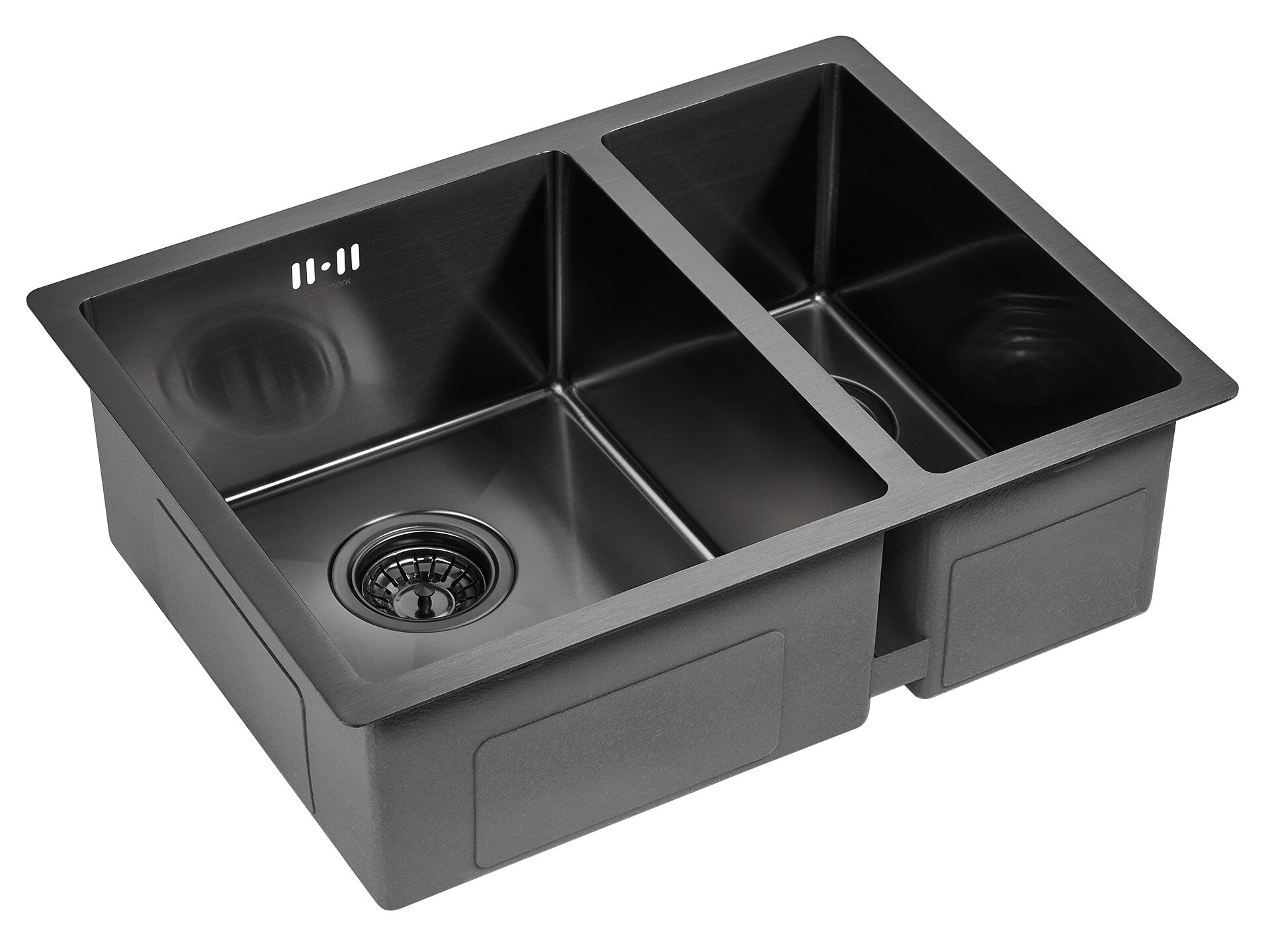 Кухонная мойка из нержавеющей стали Paulmark NEXT-SKEW 74 UNI, 740х440 мм, PVD и шумопоглащающее покрытие, врезная, подстольная и вровень со столешницей, цвет вороненая сталь