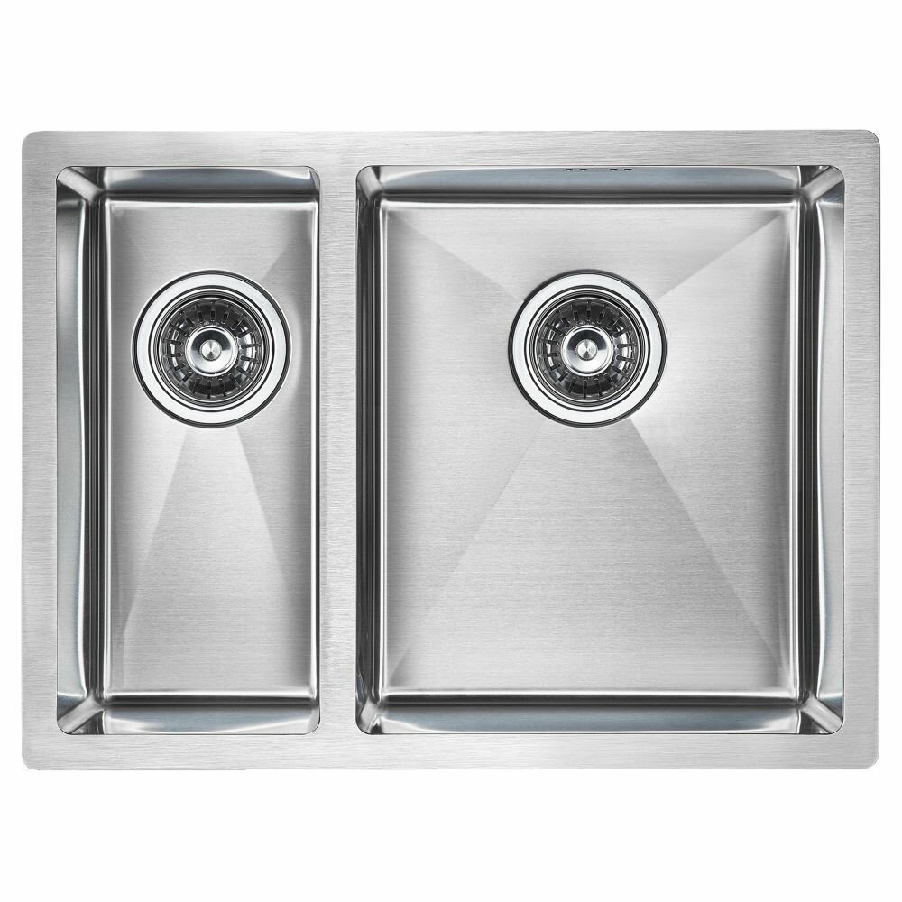 Кухонная мойка врезная из нержавеющей стали Paulmark KRONER-EDGE 59, 590х510 мм, 2 отверстия: под смеситель и дозатор, цвет брашированная сталь