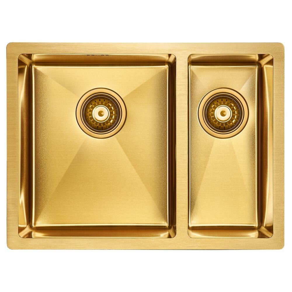 Мойка для кухни из нержавеющей стали AISI 304 PVD Paulmark NEXT 54х44 врезная / подстольная, брашированное золото, сифон, PM215444-BG