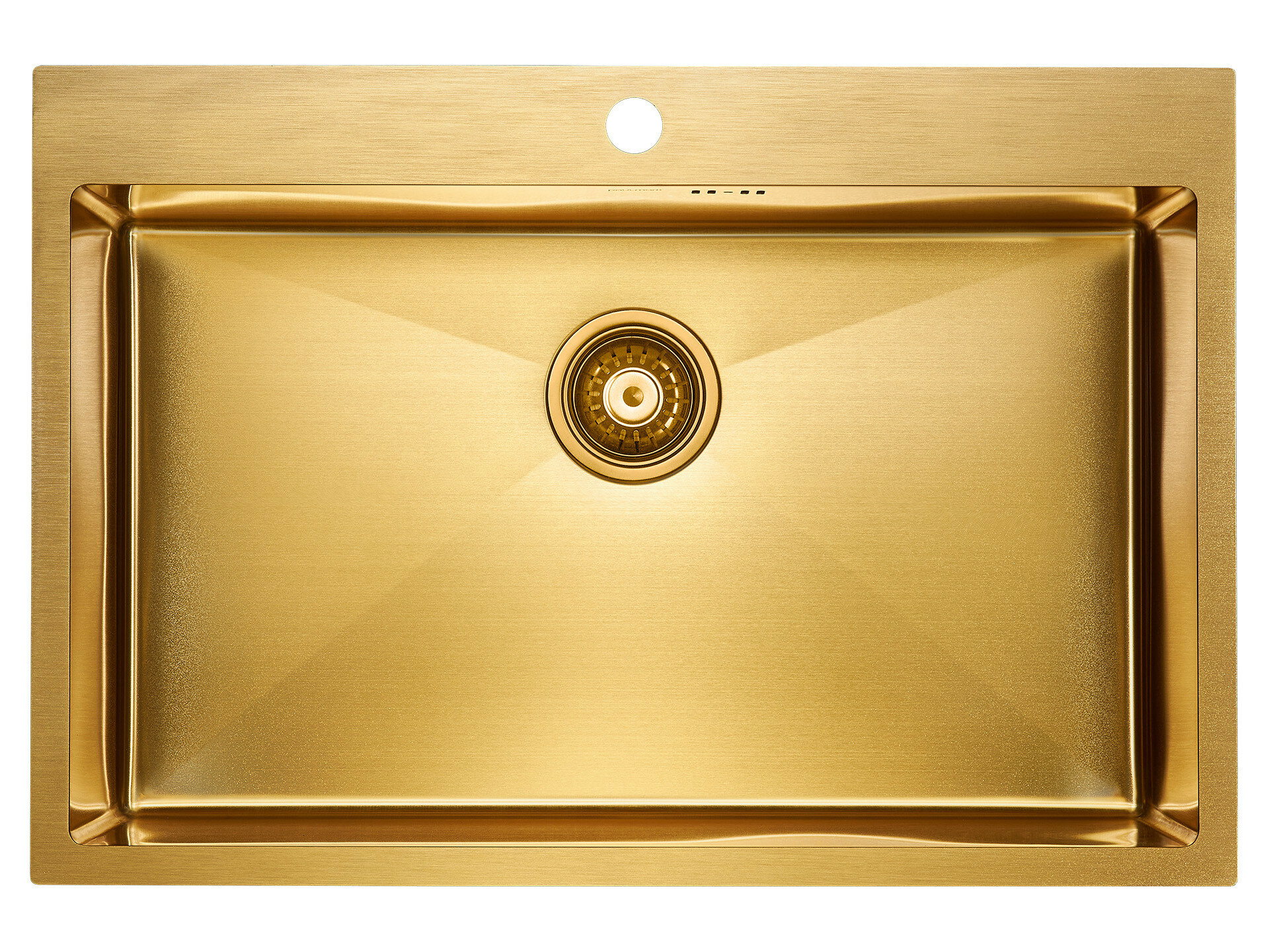 Мойка для кухни из нержавеющей стали Paulmark KRONER-PRO 59, 590х510 мм, 2 отверстия: под смеситель и дозатор, монтаж: вровень со столешницей / врезной, цвет брашированное золото