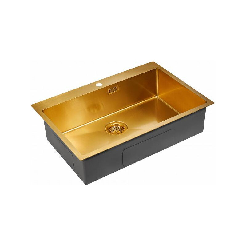Мойка для кухни из нержавеющей стали Paulmark GERBERG 78F UNI, 780х440 мм, PVD, универсальное расположение крыла: слева / справа, врезная / вровень со столешницей, цвет брашированное золото