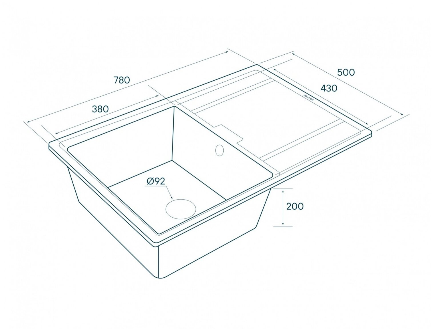 Мойка гранитная FLUGEN, PM217850-BL, черный, 780х500 мм, Paulmark