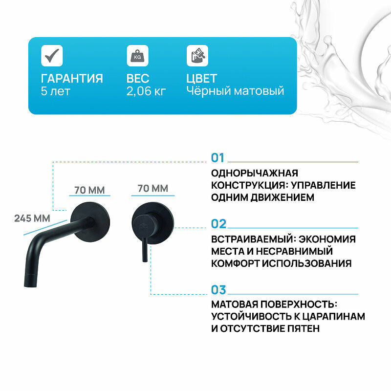 Смеситель Paffoni, серии LIGHT, для раковины встраиваемый, черный матовый LIG007NO70