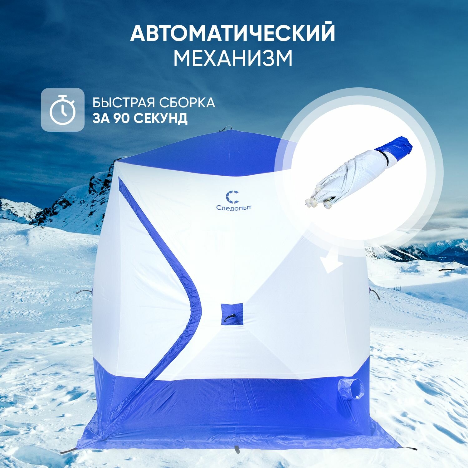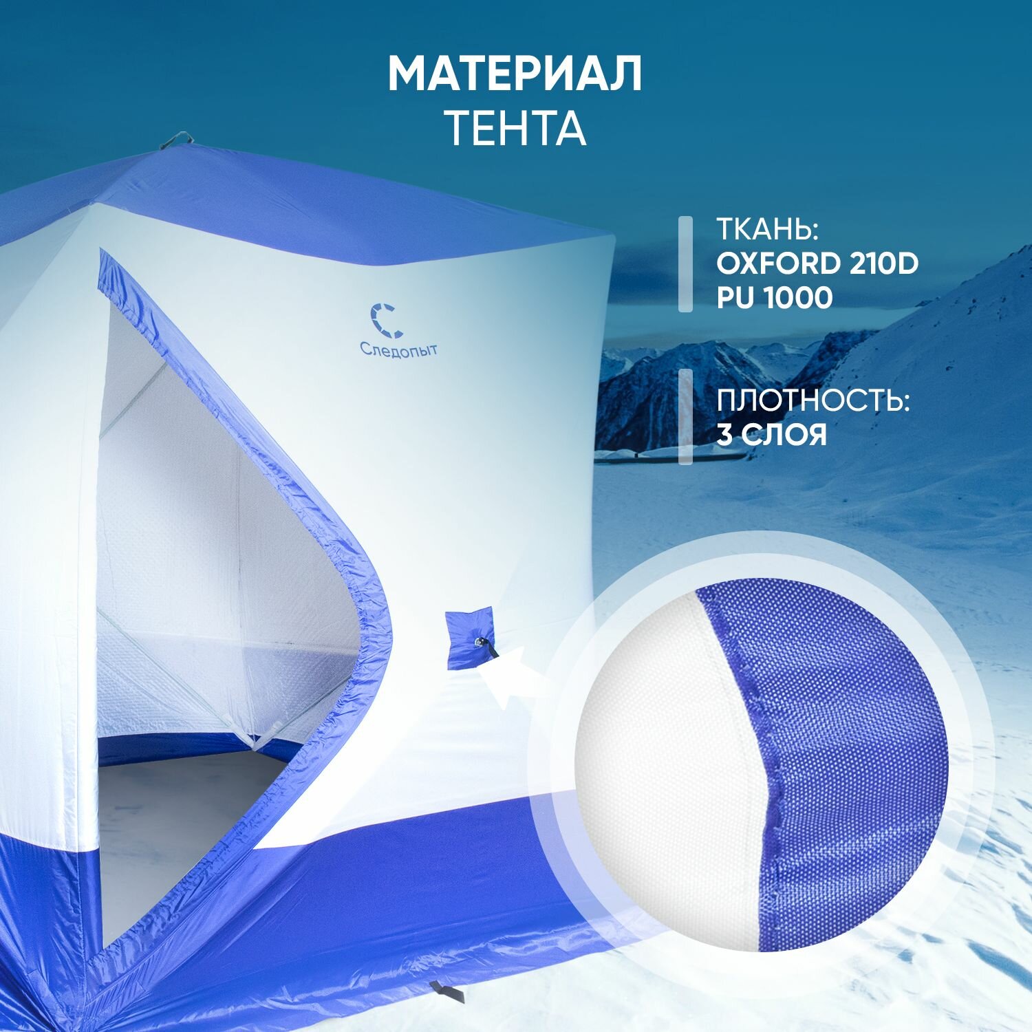 Палатка зимняя куб следопыт, 2-х местная, 3 слоя, цвет бело-синий
