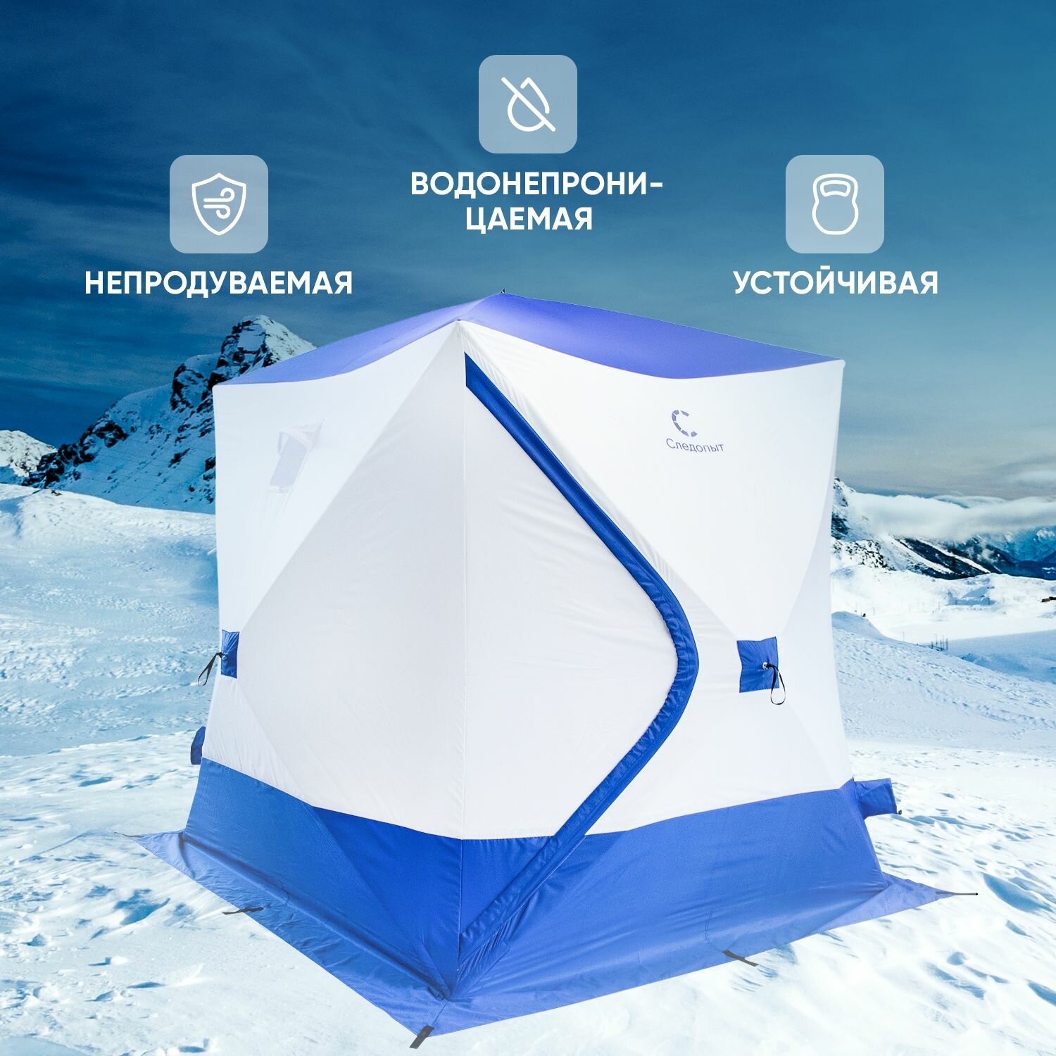 Палатка зимняя куб "следопыт", 2-х местная, 3 слоя, цвет бело-синий