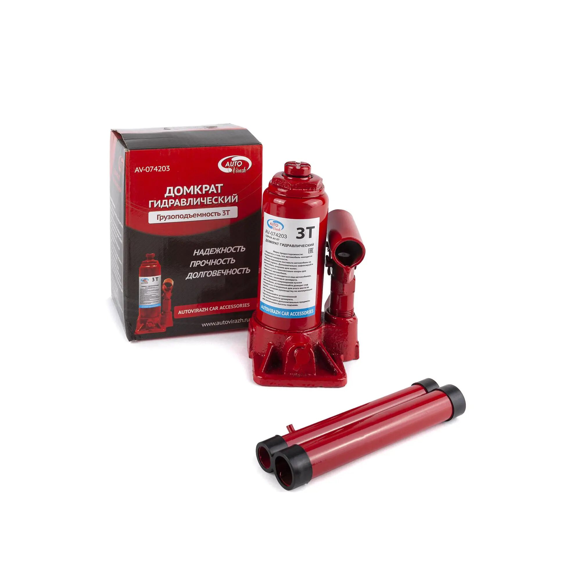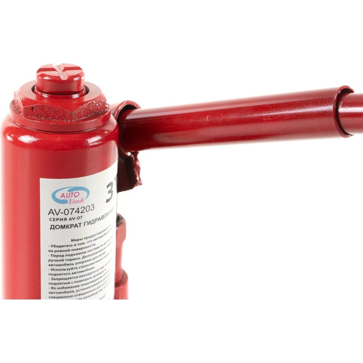 Купить AUTOVIRAZH Домкрат гидравлический 3 т бутылочный в коробке /красный/ AV-074203