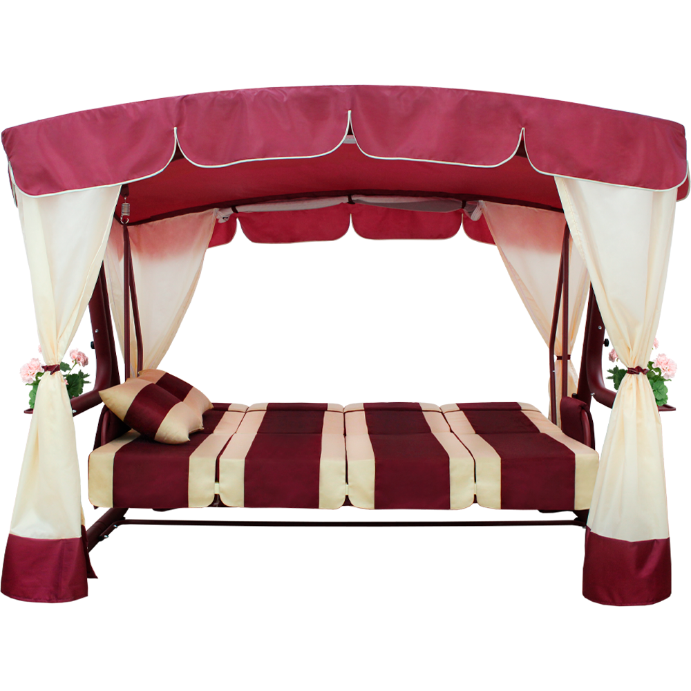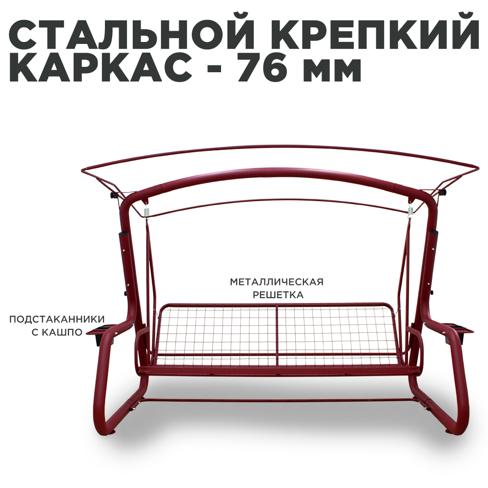 Купить Садовые качели эдем люкс для дачи уличные 4-местные подвесные с тентом и москитной сеткой бордо