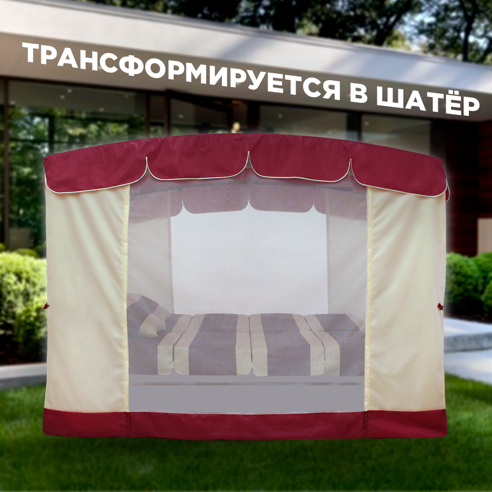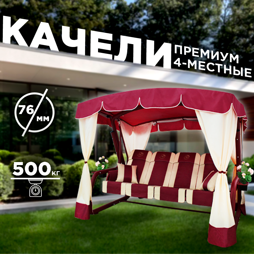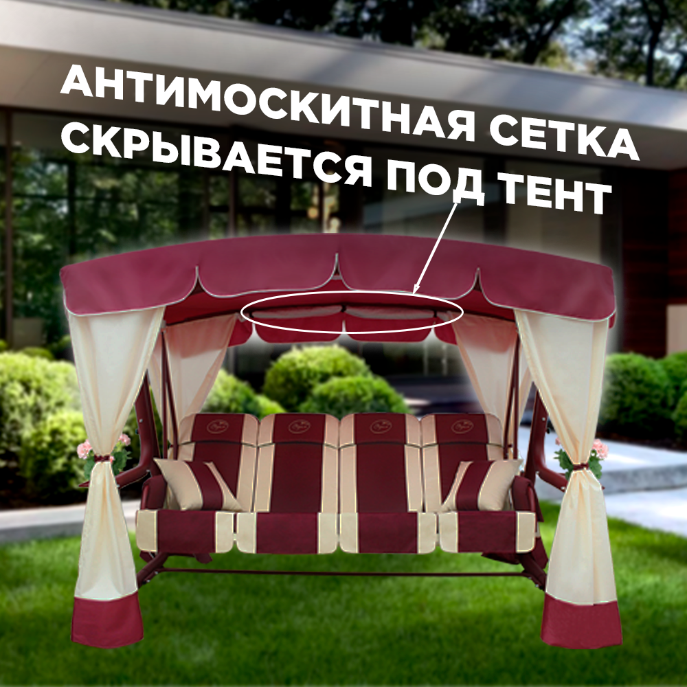 Садовые качели эдем люкс для дачи уличные 4-местные подвесные с тентом и москитной сеткой бордо интересное: