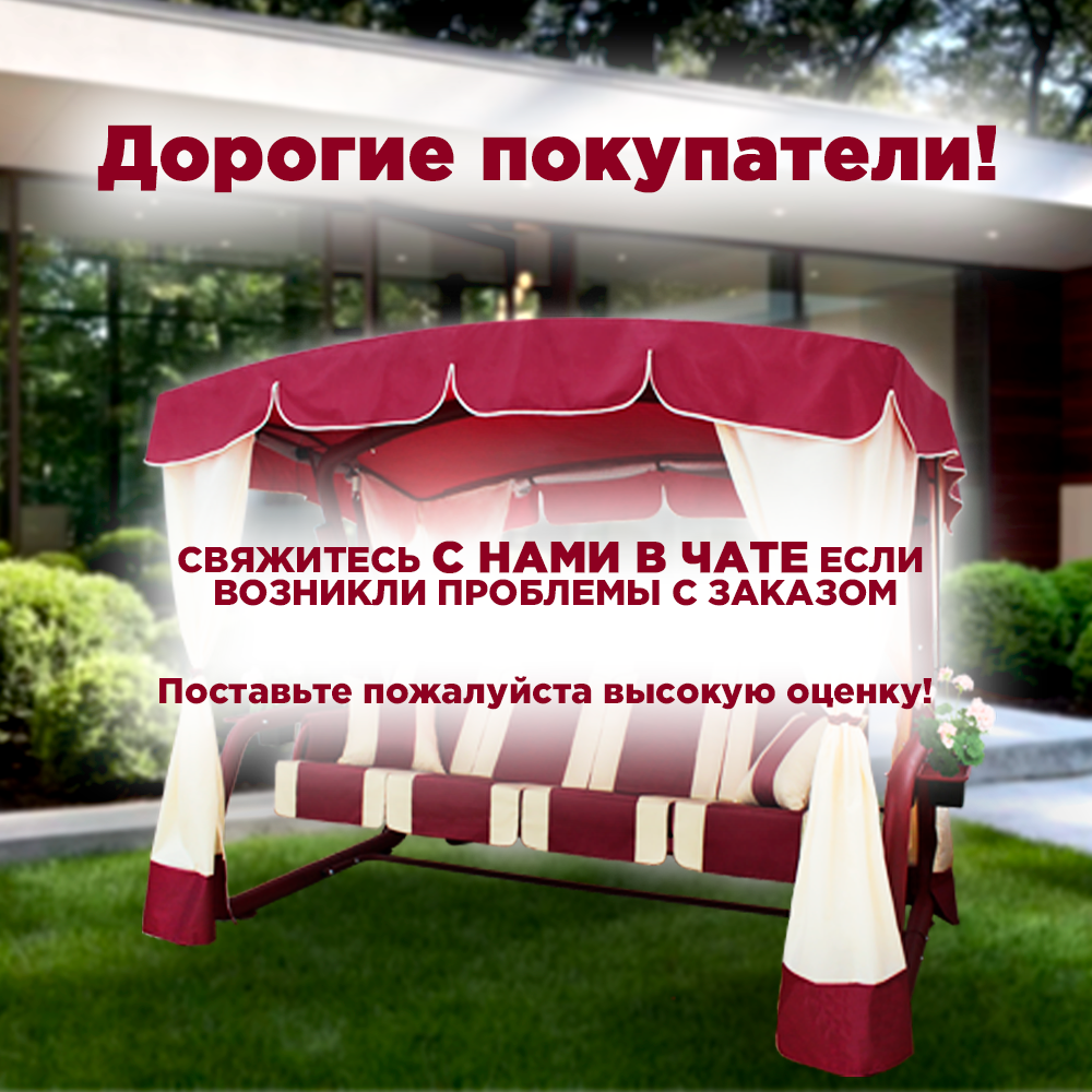 | Отзыв: | Купили в начале лета, сразу собрали и стали пользоваться. Помещается вся семья, очень приятно отдыхать на таких качелях. Большое спасибо за помощь в оформлении заказа. Отдельное спасибо менеджеру по имени Татьяна, внимательный и отзывчивый человек! СПАСИБО! Успехов вам в вашей работе и процветания компании! |