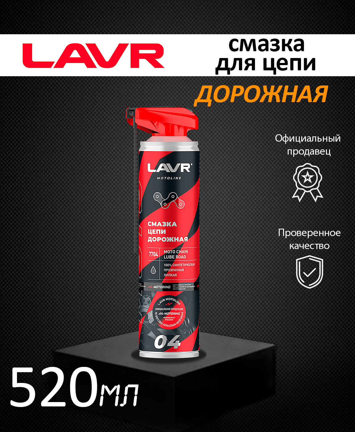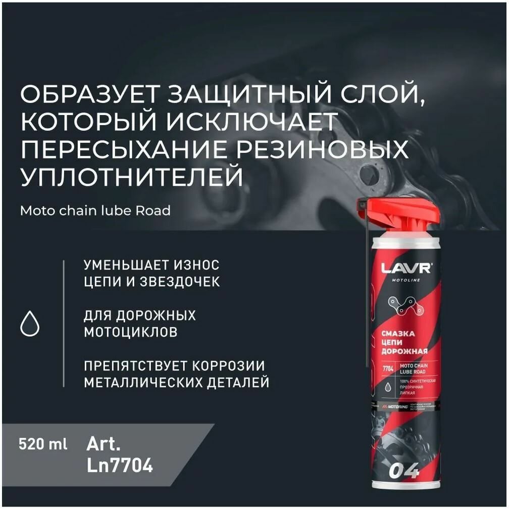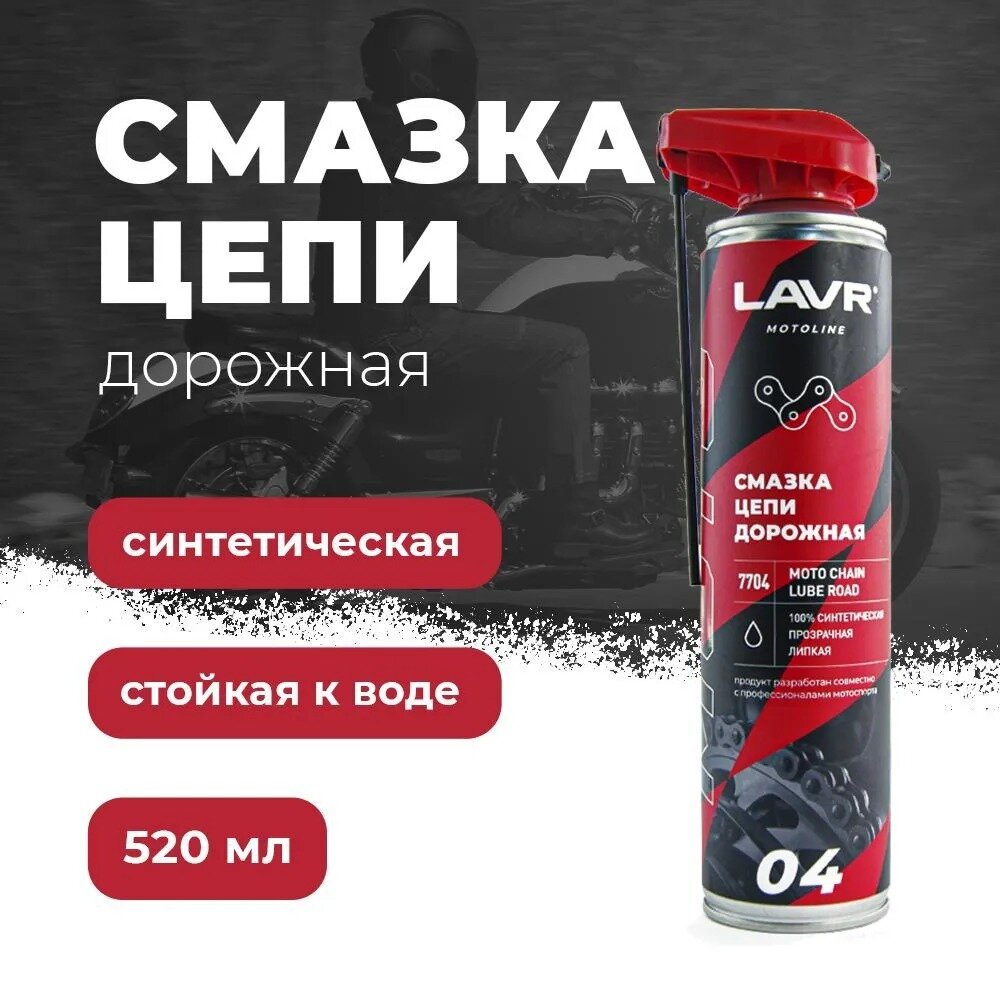 СохранитьСмазка цепи для мотоциклов LAVR MOTO дорожная, 520 мл / Ln7704 интересное: