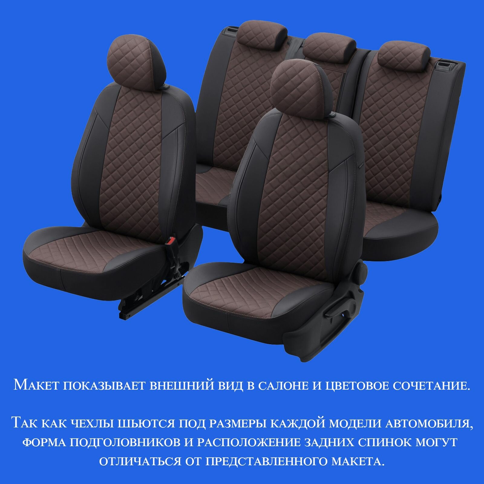 Комплект чехлов Автопилот Ромб Mitsubishi Lancer 10 Sd с 07-11г. (комплектация invite) Коричневый + Коричневый