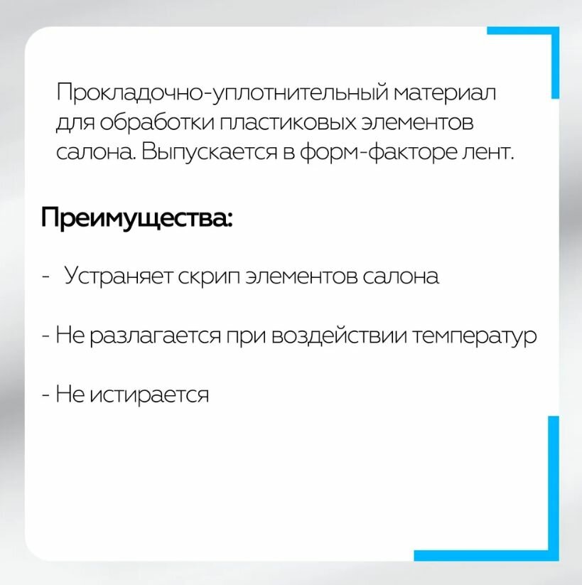 | Плюсы: | Хороший материал для устранения скрипа между трущимися частями пластика салона в автомобиле |