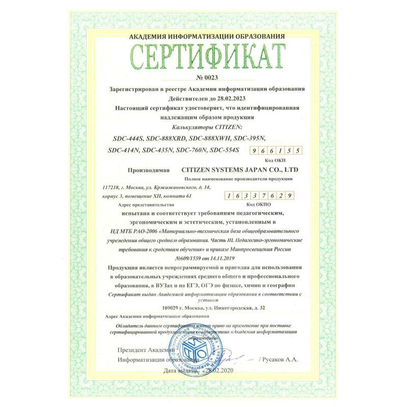 Калькулятор Citizen Sdc-888xwh .