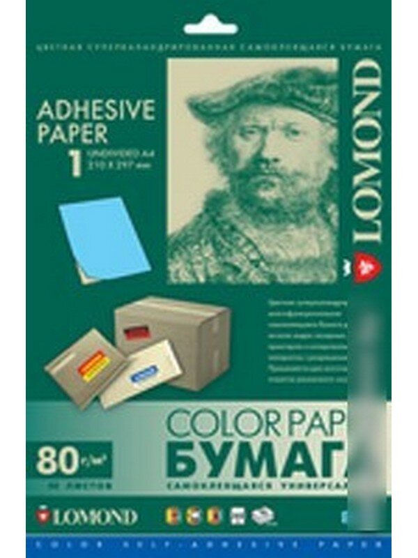 Бумага LOMOND 2140005 самоклеющаяся голубая неделённая, 1 часть А4 (210 x 297 мм) 80 г/м2, 50 листов