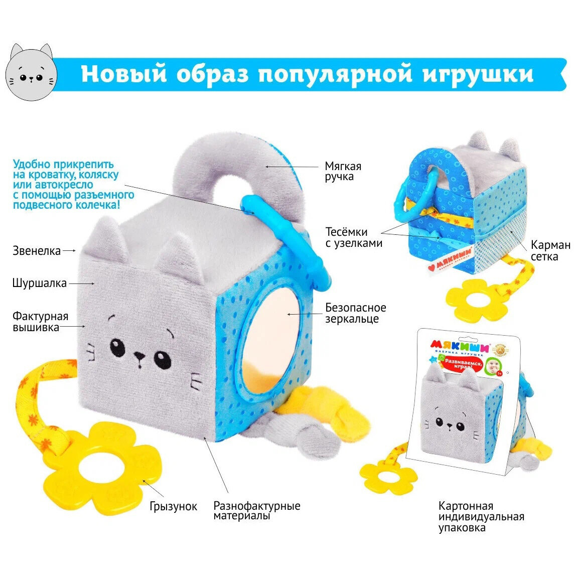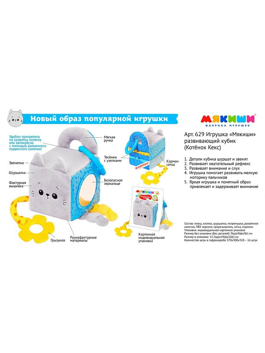 Мякиши Кубик развивающий Котёнок Кекс 16*19*10см 629м интересное: