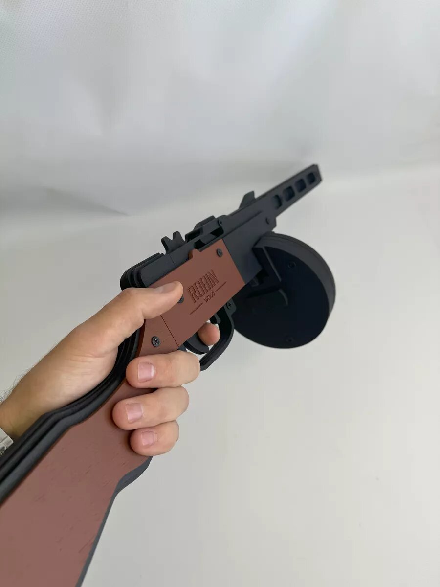 Игрушечный пистолет-пулемет "Автомат ППШ", деревянный резинкострел, собранный, Игрушка из дерева, Подарок мальчику