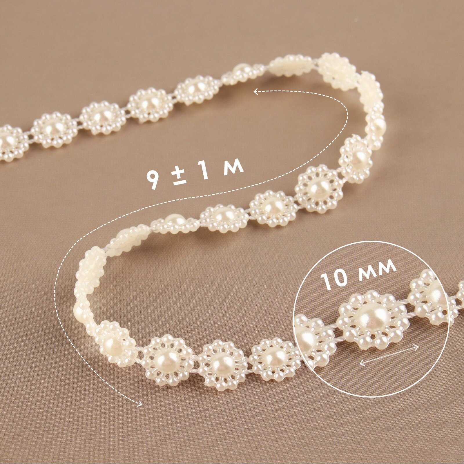 Жемчуг на нитях, плоский, 10 мм, 9 ± 1 м, цвет молочный 1шт. интересное: