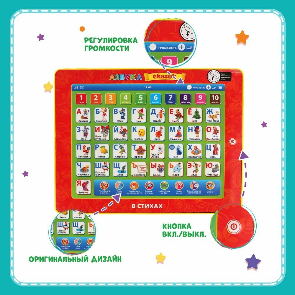260242 Обучающий планшет азбука сказок. 60 стихов, сказок, звуков, регулировка громкости Умка