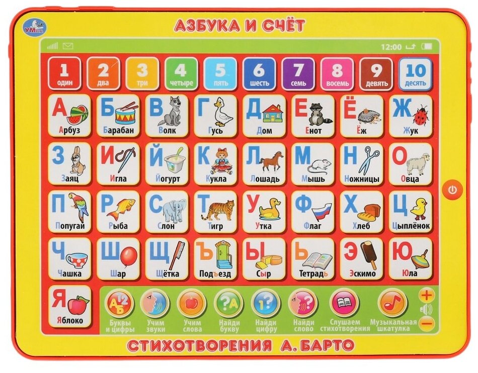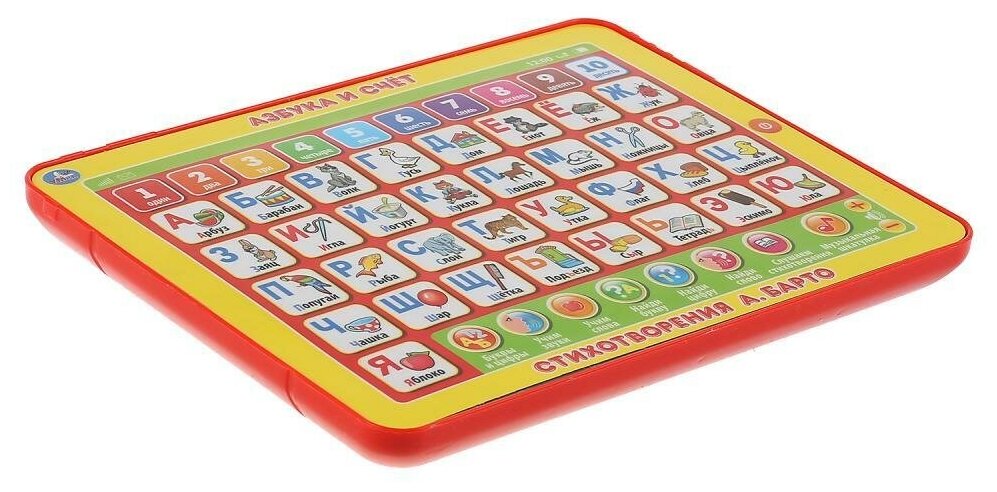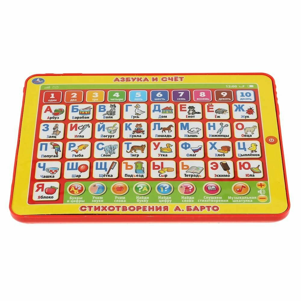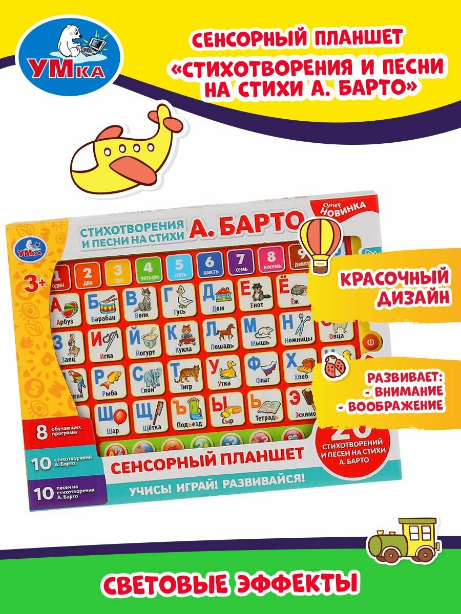 Сенсорный планшет барто А. азбука и счет 20 стихов и песен, 8 обуч. программ в кор. Умка
