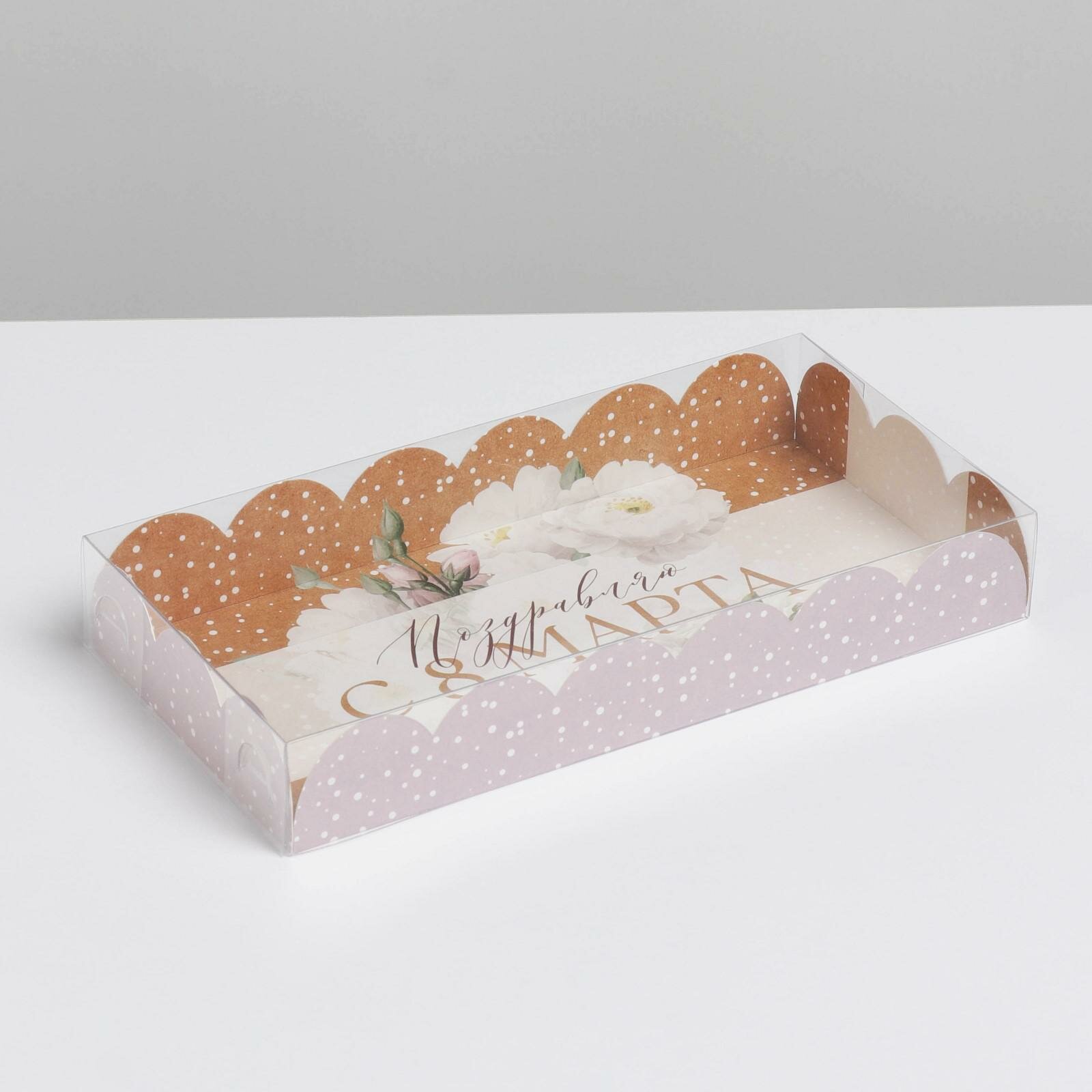 Купить Коробка для кондитерских изделий с PVC-крышкой «8 марта», 10.5 × 21 × 3 см (5шт.)