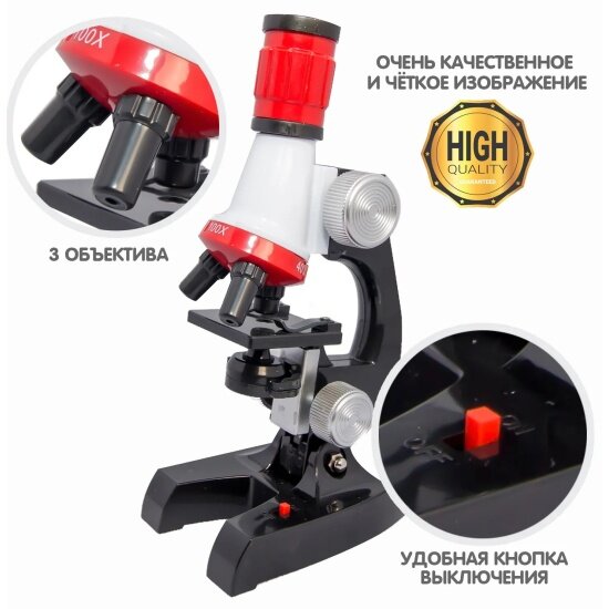 | Минусы: | Качество увеличения «хромает», но не критично, нужно помнить, что это детский микроскоп-игрушка. Бактерии там рассмотреть не получится. |