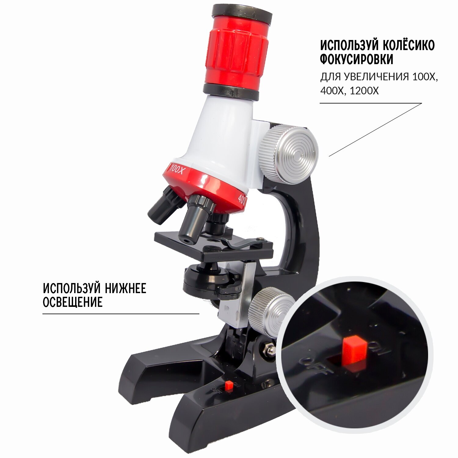 Микроскоп BONDIBON Технический прогресс науки с Буки Юный биолог (ВВ4200) черный/белый/красный