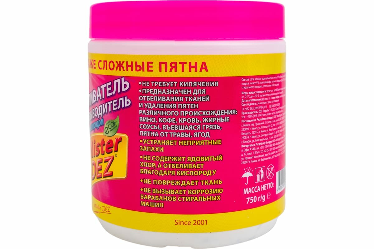 Mister Dez Отбеливатель-пятновыводитель с активным кислородом Eco-Cleaning, 750 г, 2 шт