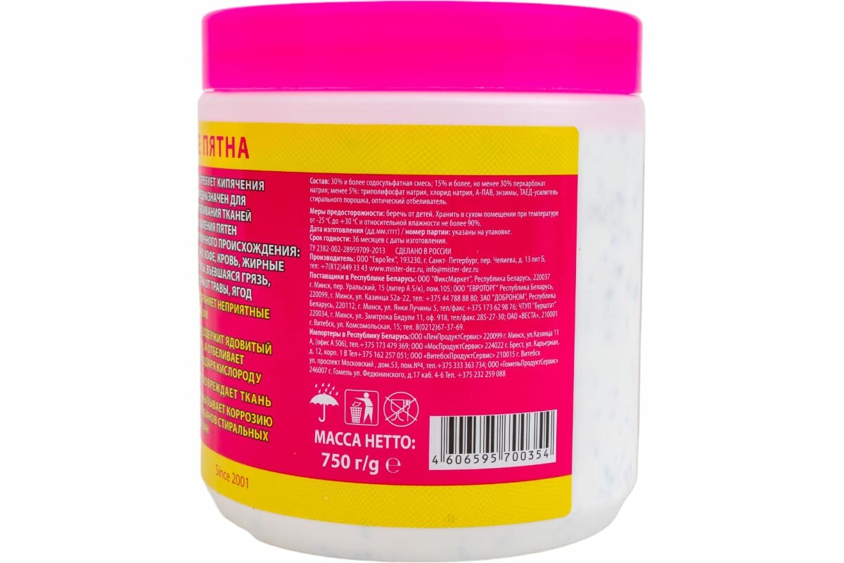 Отбеливатель-пятновыводитель с активным кислородом mister dez, 1000 гр.(мк)