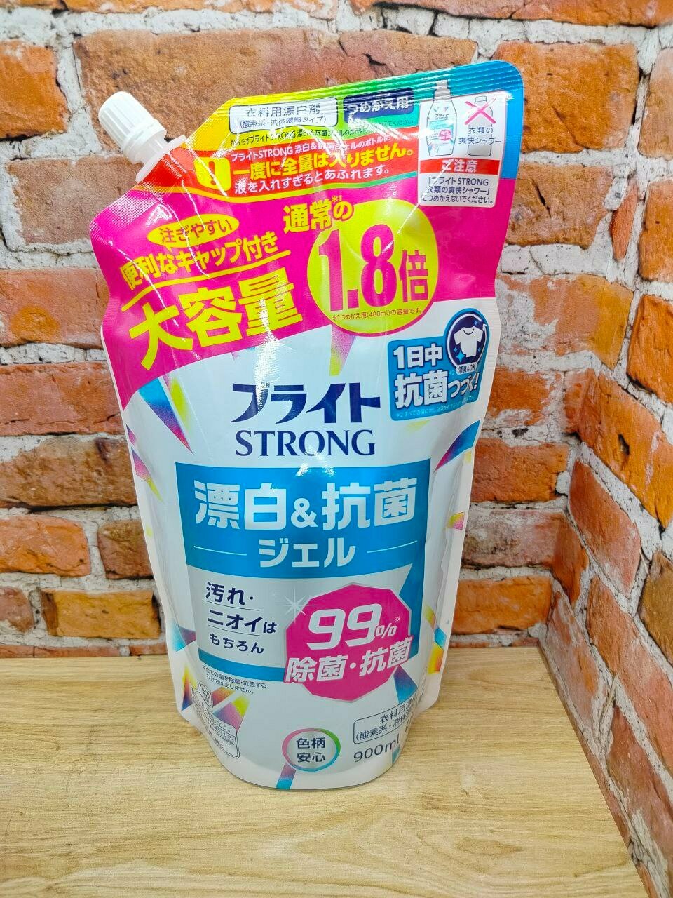 Lion Bright Strong Гель отбеливатель кислородный для стойких загрязнений с антибактериальным эффектом, мягкая упаковка, 900 мл.