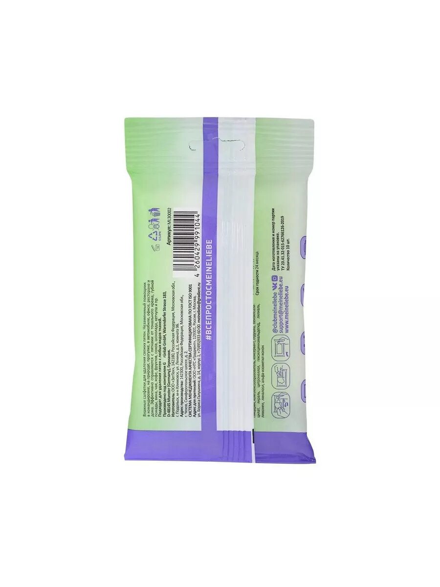 Салфетки влажные Meine Liebe Пятновыводящие для всех типов тканей 10шт