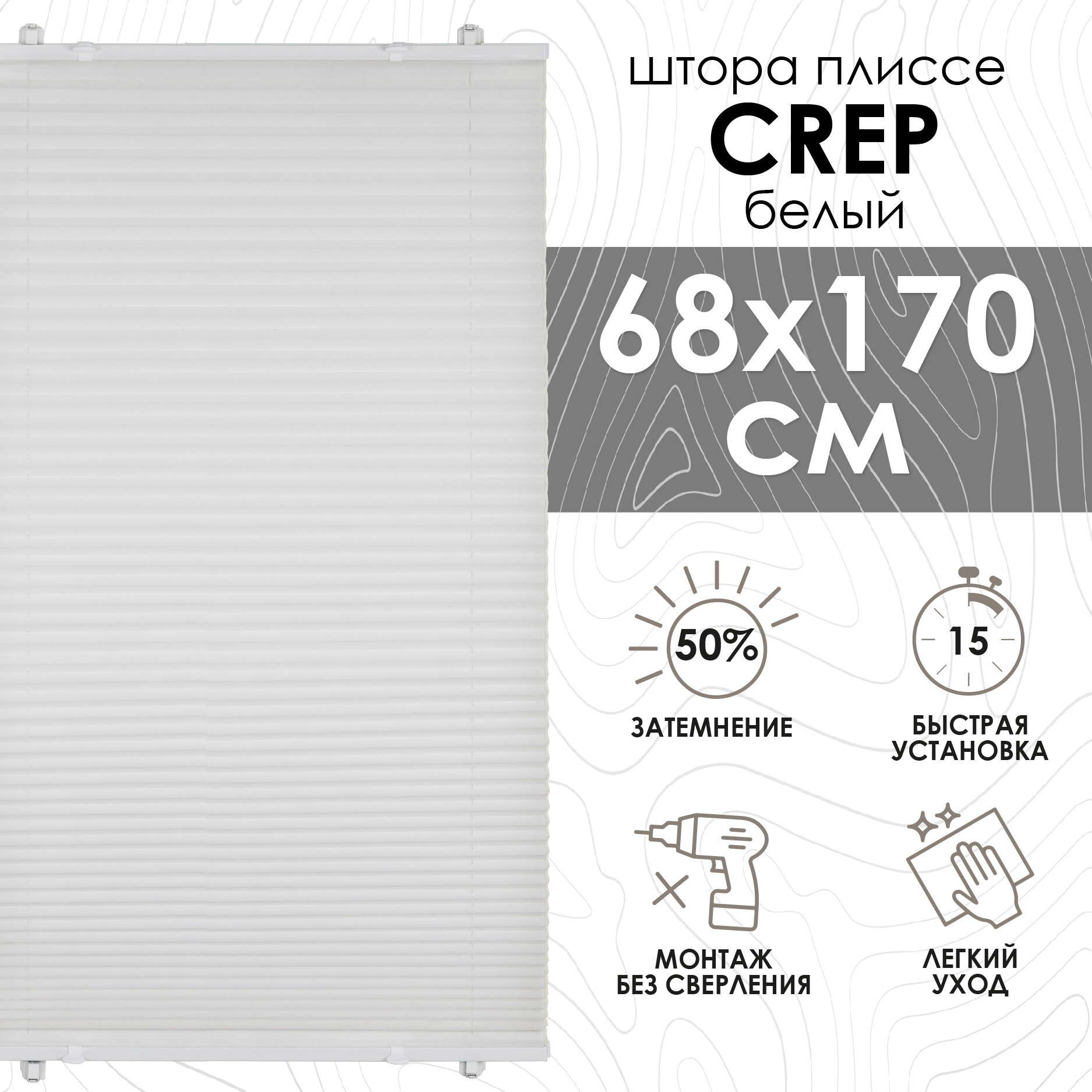 Плиссе натяжного типа;Crepe; 68х170