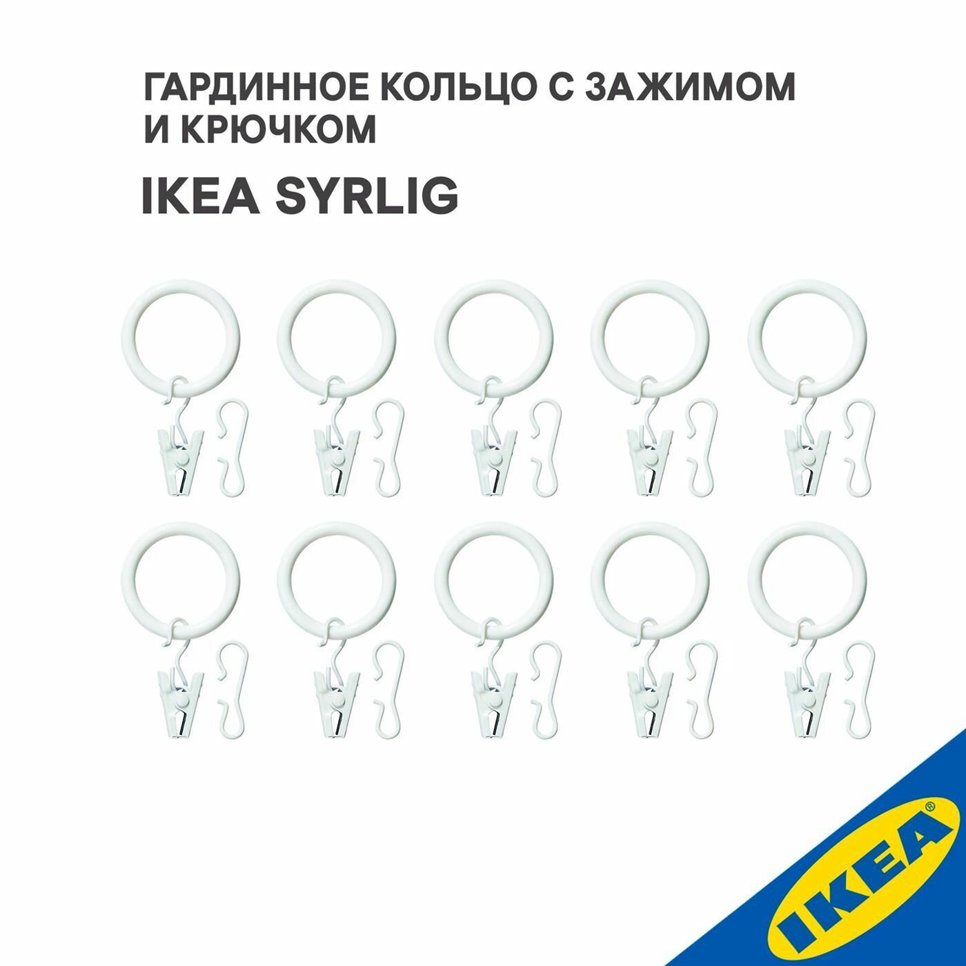 Купить Кольца 10 шт. с зажимом и крючком IKEA SYRLIG сирлиг, 25 мм, белый