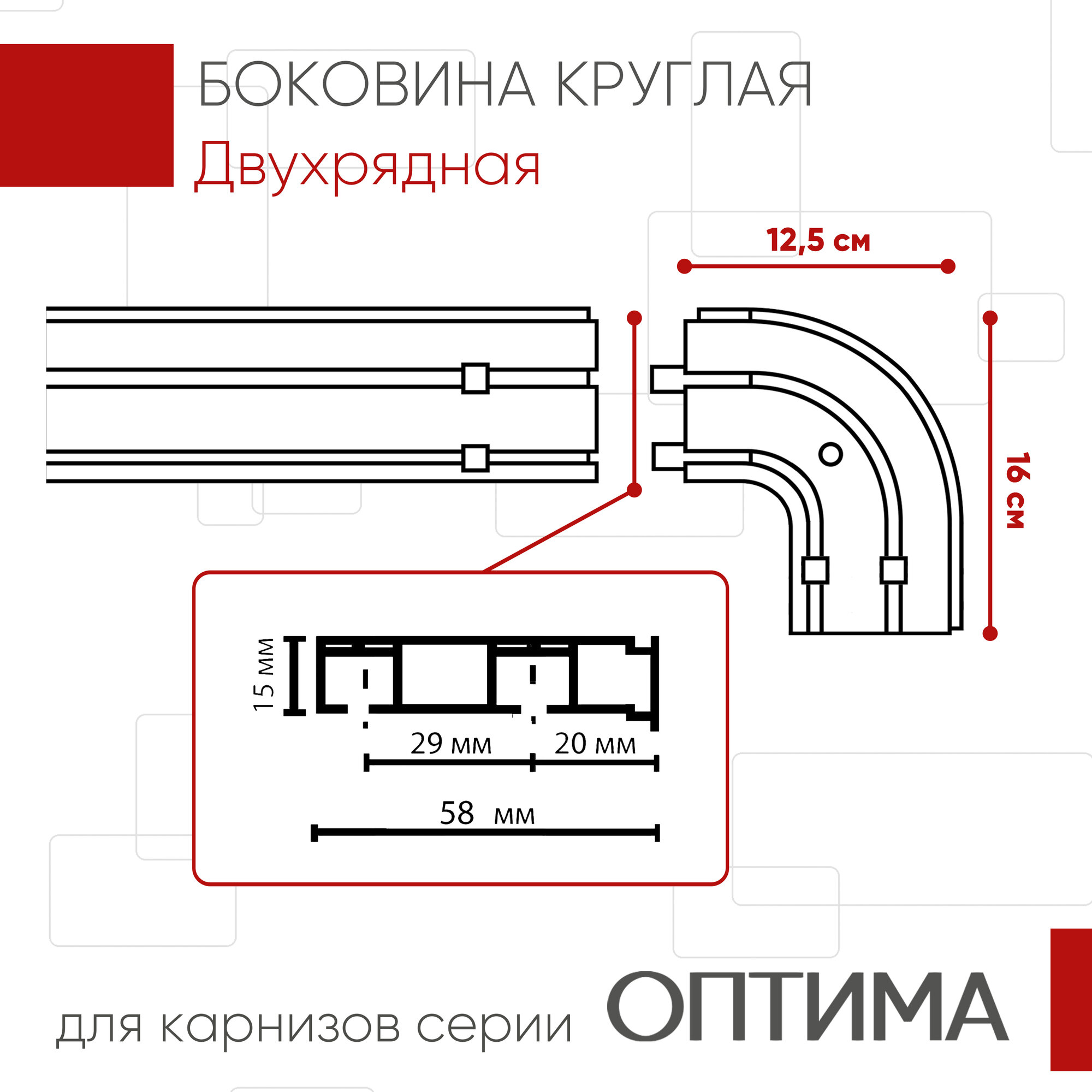 Боковина круглая для карнизов Оптима, для двухрядной шины, 20 см, 2шт в упаковке