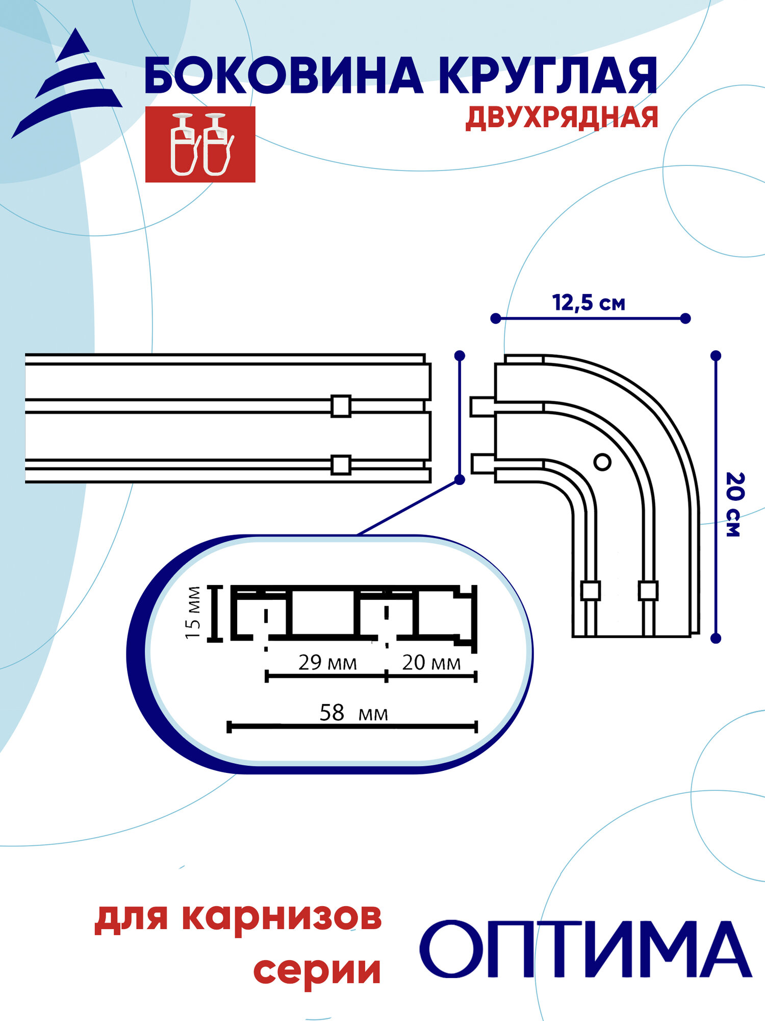 Купить Боковина круглая для карнизов Оптима, для двухрядной шины, 20 см, 2шт в упаковке