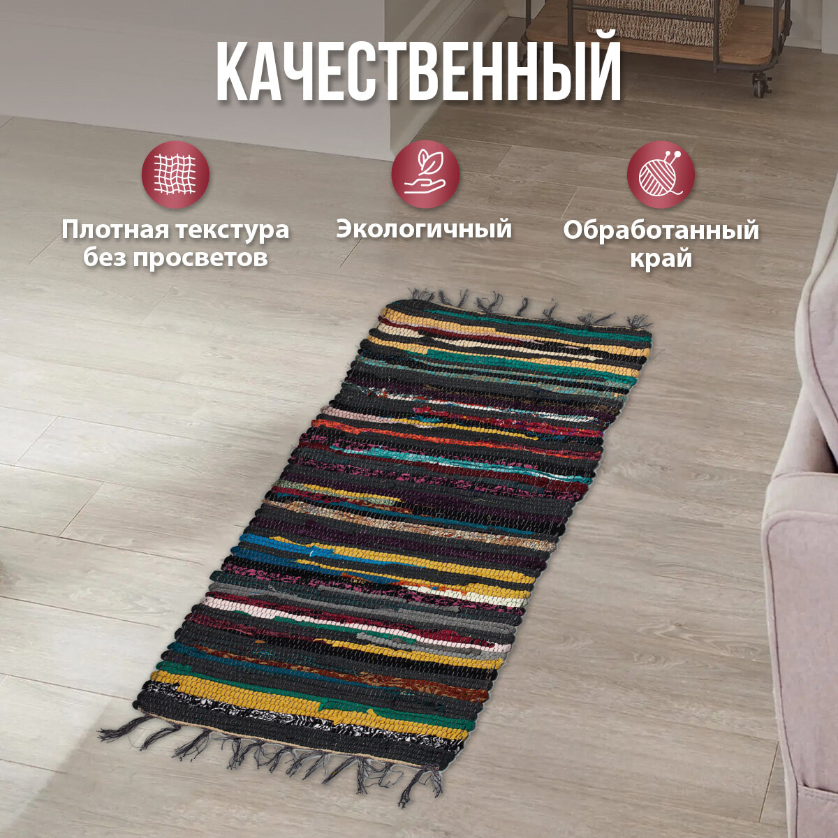 Коврик "Вологодский" домотканый половик, 60х140 см