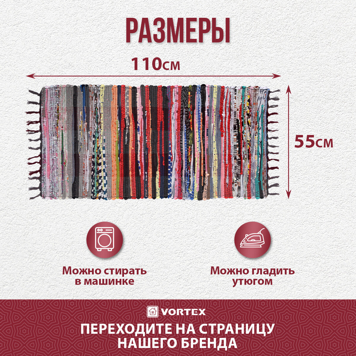 Коврик хлопковый /на пол/комнатный/интерьерный "Вологодский" 55*110 см VORTEX