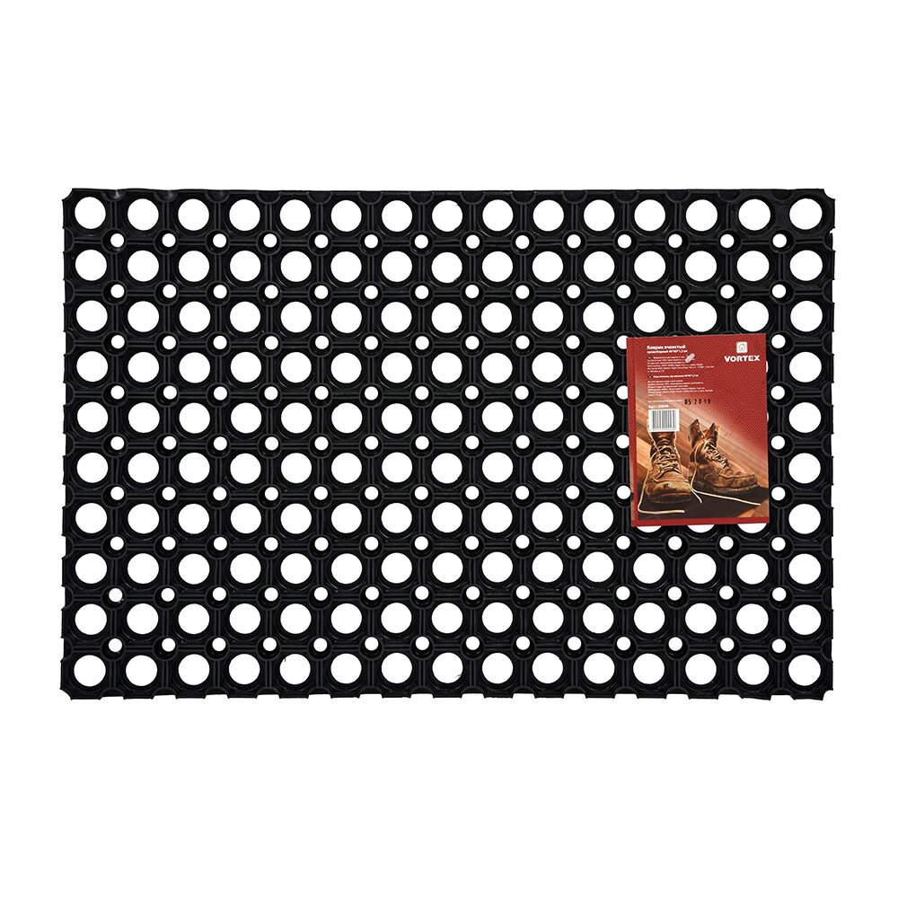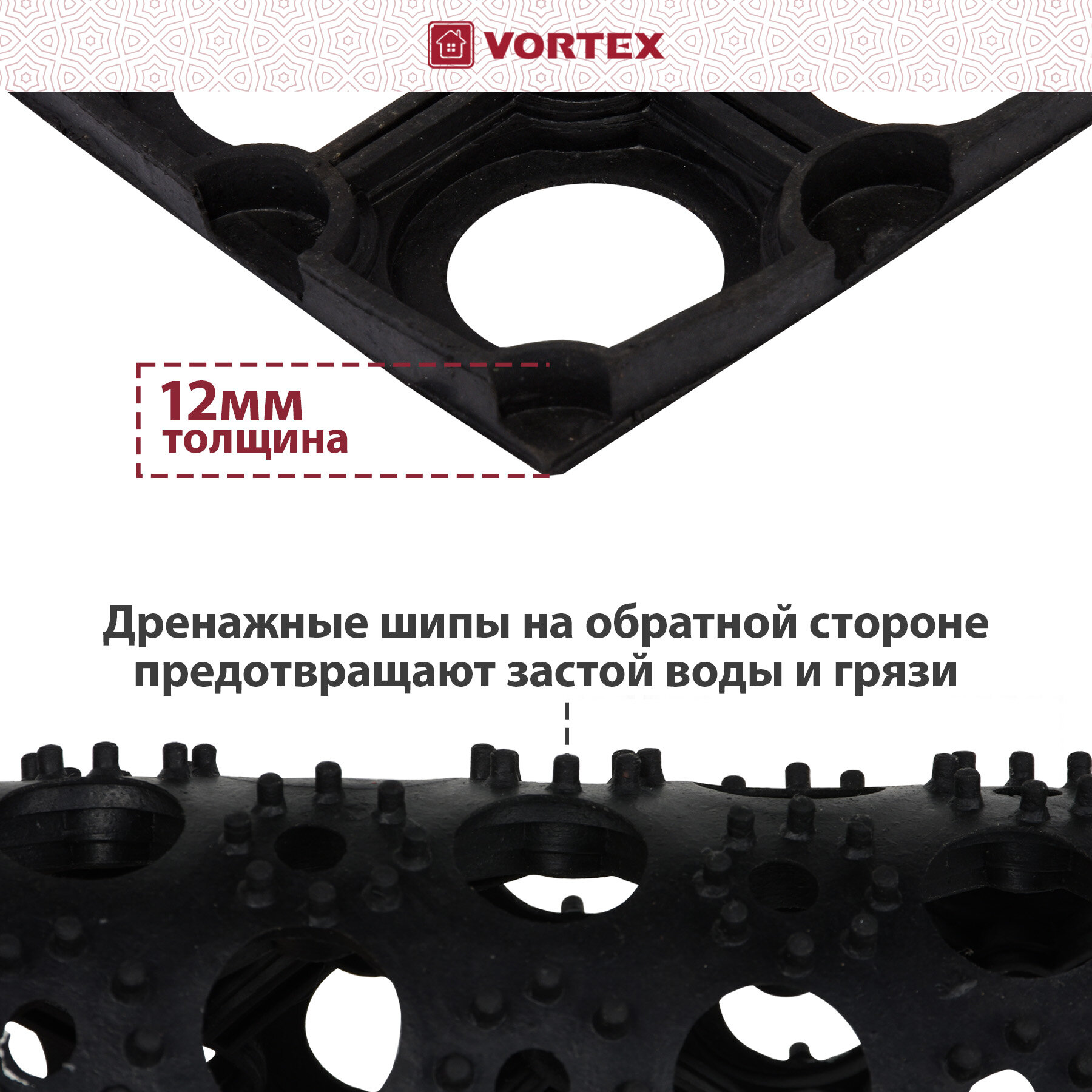 Коврик входной Vortex резиновый крупноячеистый грязезащитный, 50х100 см, толщина 16 мм, черный