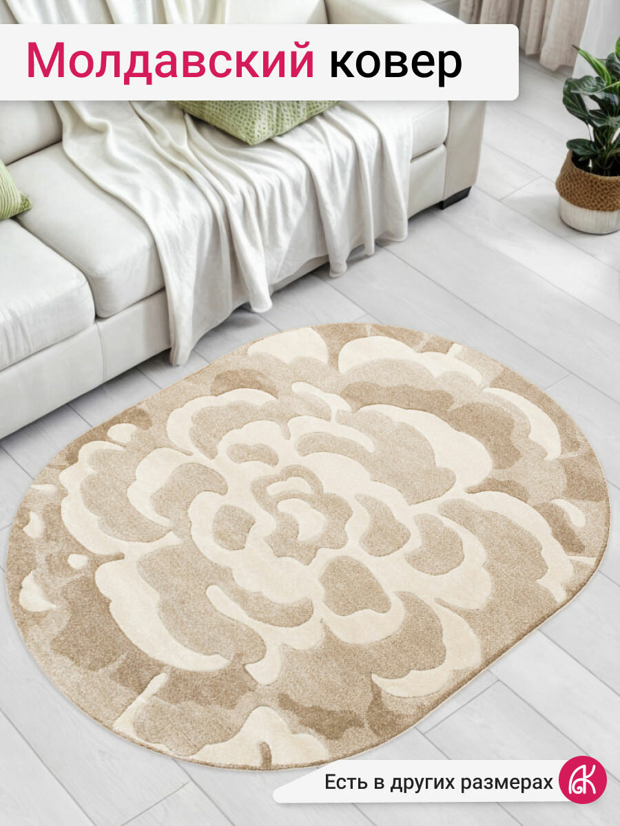 Ковер на пол 1,2 на 1,7 м в спальню, гостиную, бежевый Soho 1952-18455 овальный