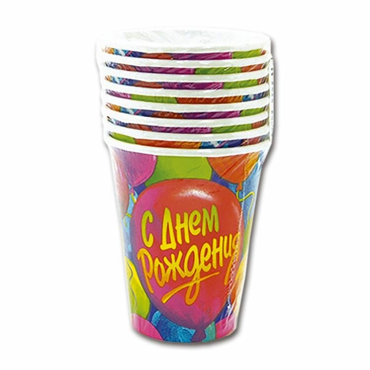Стакан С Днем Рождения Шары 1502-0281 8шт., 257мл.