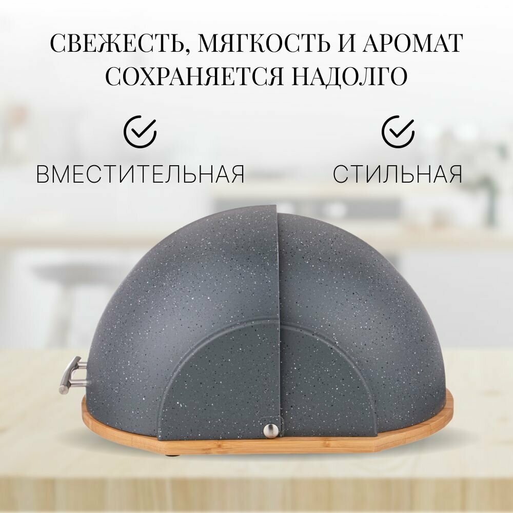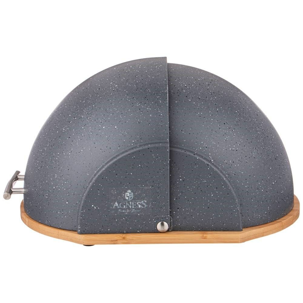 Хлебница из стали с бамбуковой крышкой - доской Agness "Арктик" 6 л., 36 х 20 х 13 см