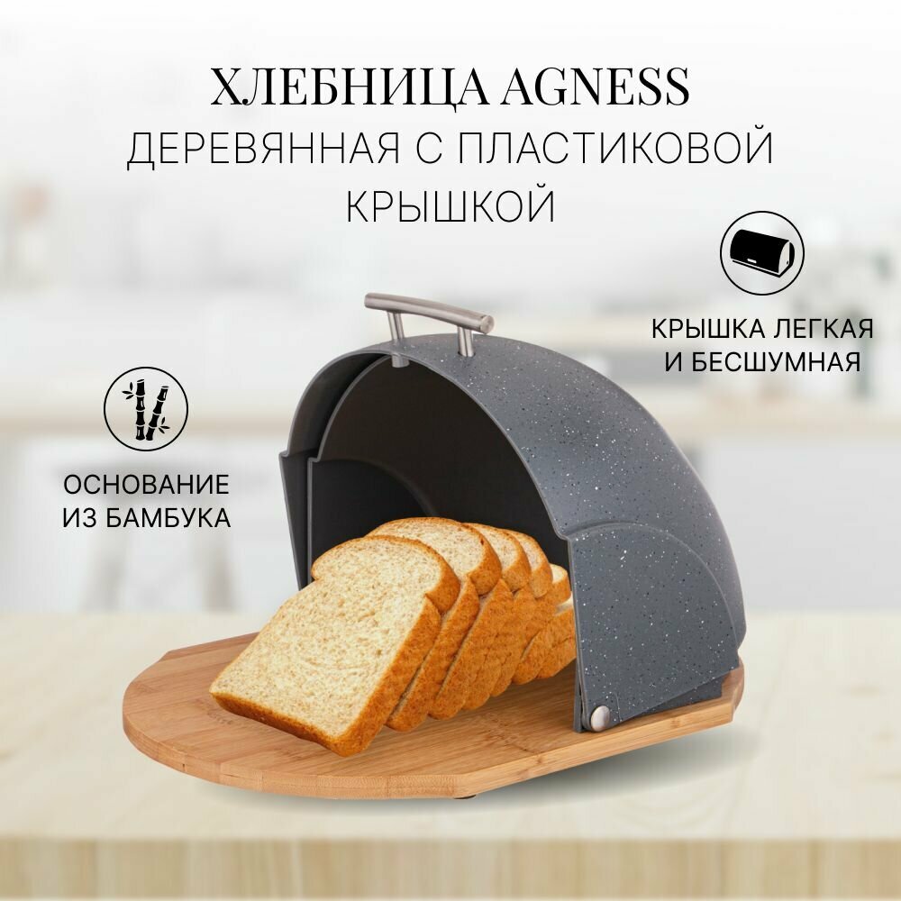 Купить Хлебница Agness деревянная с пластиковой крышкой, 36х26х20 см