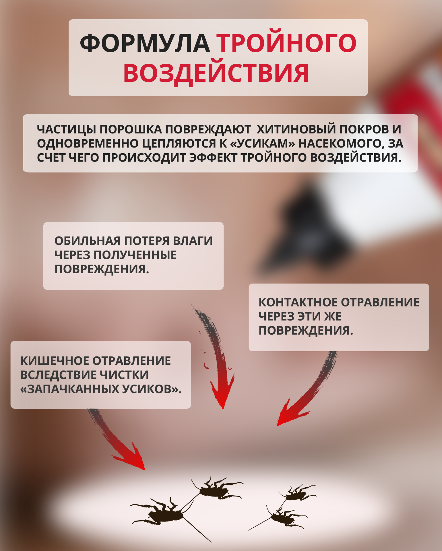 | Плюсы: | Без запаха, вернее с запахом мела или пыли. На домашних животных не действует. Часть насекомых умерло. Иссохли. |